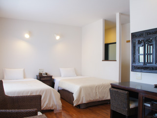 南国の雰囲気が漂う客室には、素足で寛いでいただけるよう、床はフローリング仕様になっています。